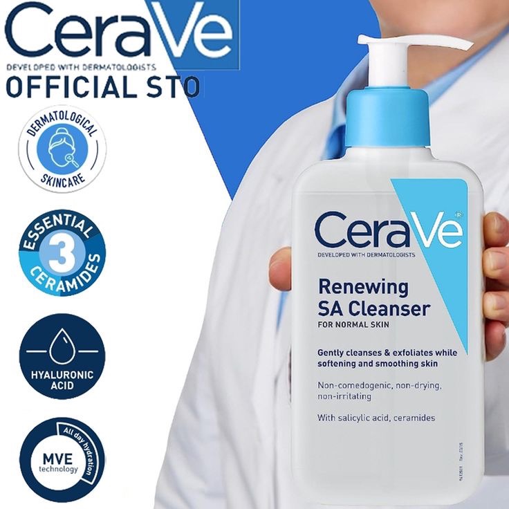 CeraVe Renewing SA Cleanser provides gentle, non-irritating exfoliation without harsh microbeads that can scratch your skin. Our salicylic acid cleanser not only exfoliates the skin, but with three essential ceramides, hyaluronic acid and niacinamide it also helps soften and smooth the skin without disrupting its protective barrier